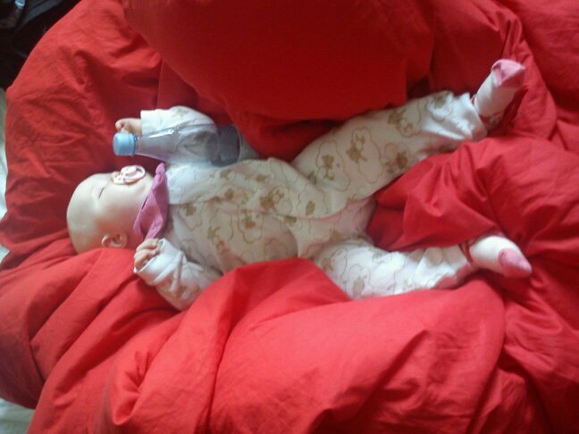 Hun har droppet flasken i dagtimerne .. Hun vil KUN have den om natten , og der er det vidst fordi hun sover mens hun spiser :b