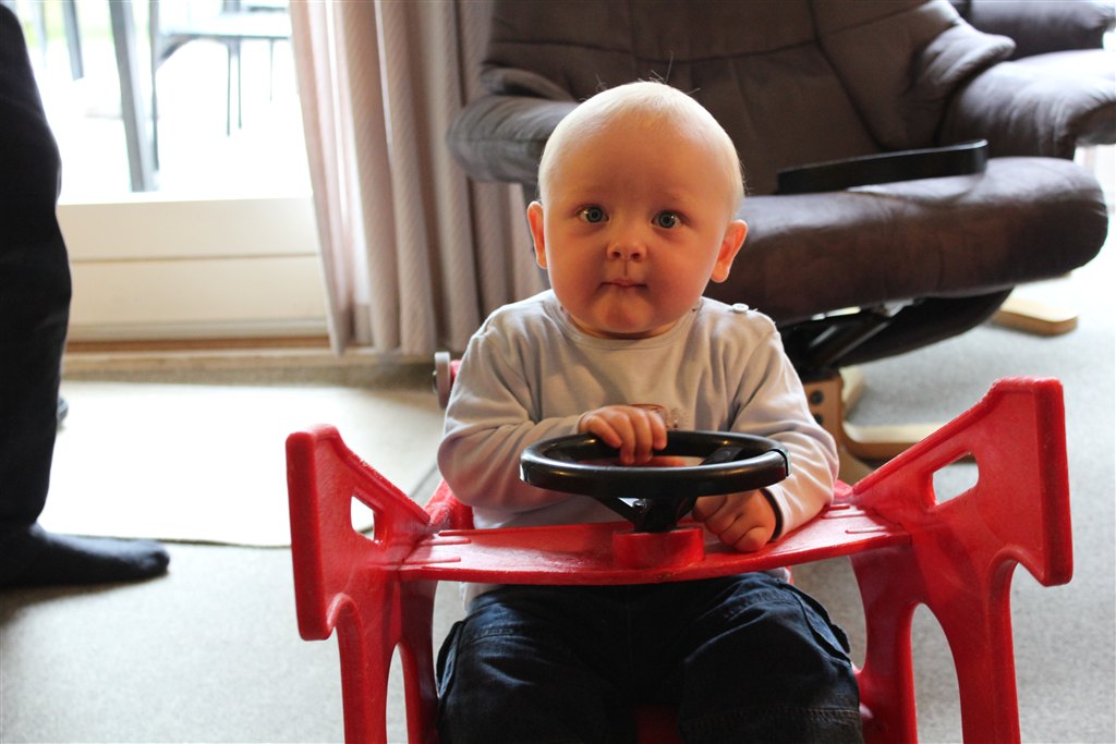 Han begynder i DP pr. 1/8 - jeg er SIKKER på, at det bliver en vidunderlig tid for ham, da han ELSKER andre børn. Bare vi går forbi en reklame med et babyansigt på, så skraldgriner han og smiler over hele fem-øren. Ligeledes når vi går i byen, og han ser andre små børn. Så ingen bekymringer her.