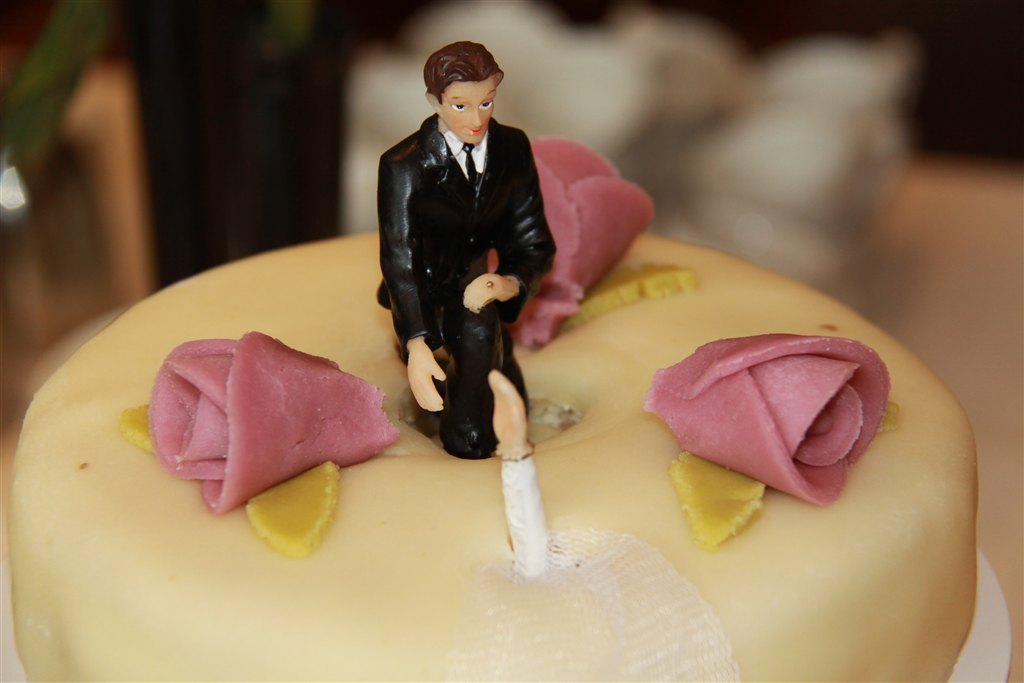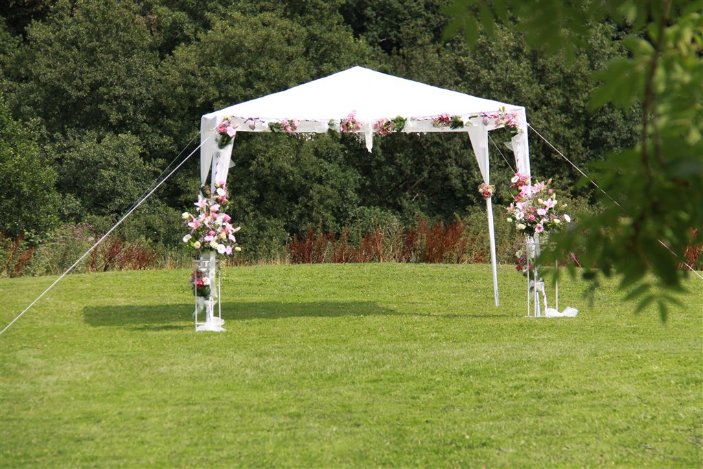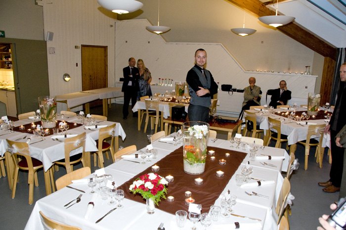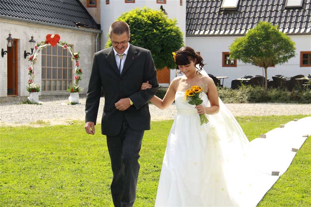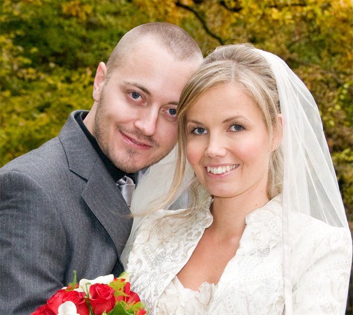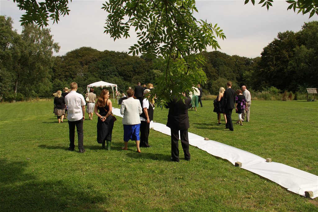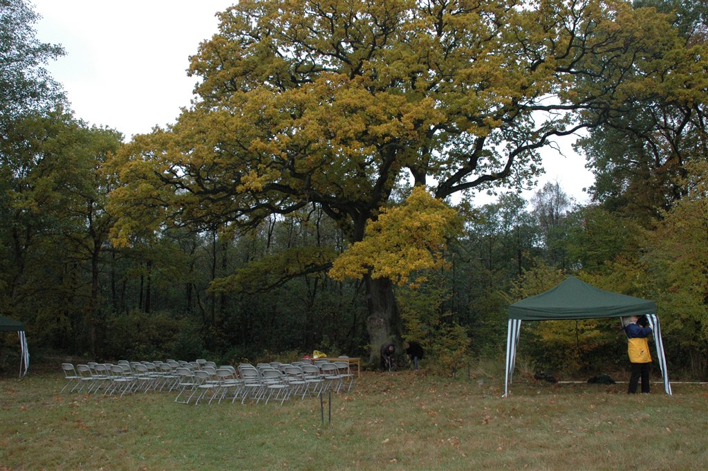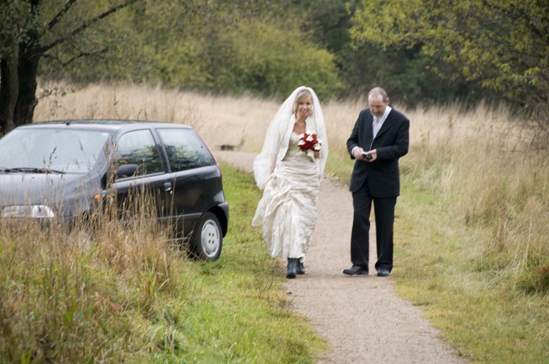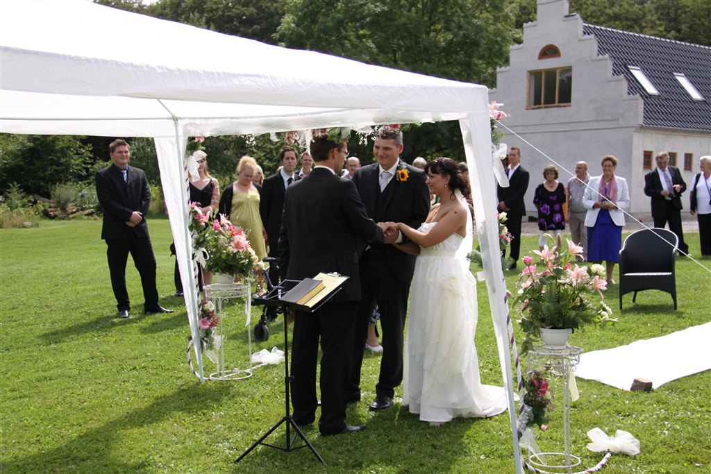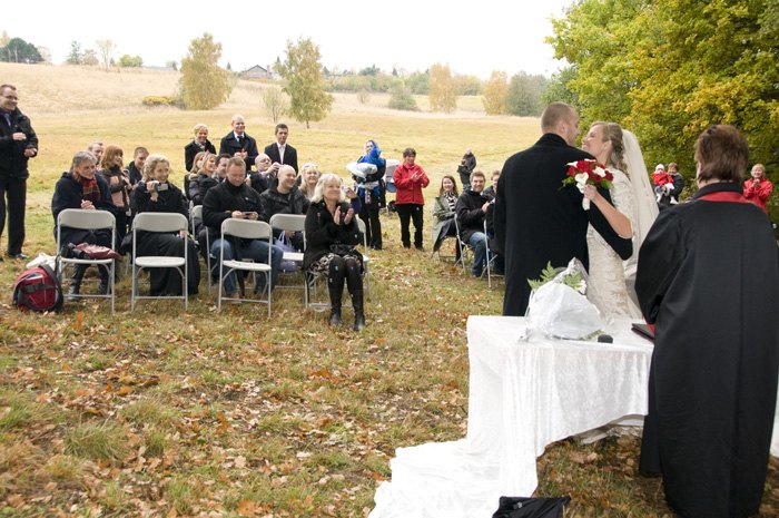 Vi blev viet i en skov en lidt grå efterårsdag, men skoven var så smuk. Efter der tog vi hen i et lokale vi havde lånt og holdte delvist reception og festen der. Det var den mest fantastiske og eventyrlige dag, og jeg havde gummistøvler på i skoven, he he