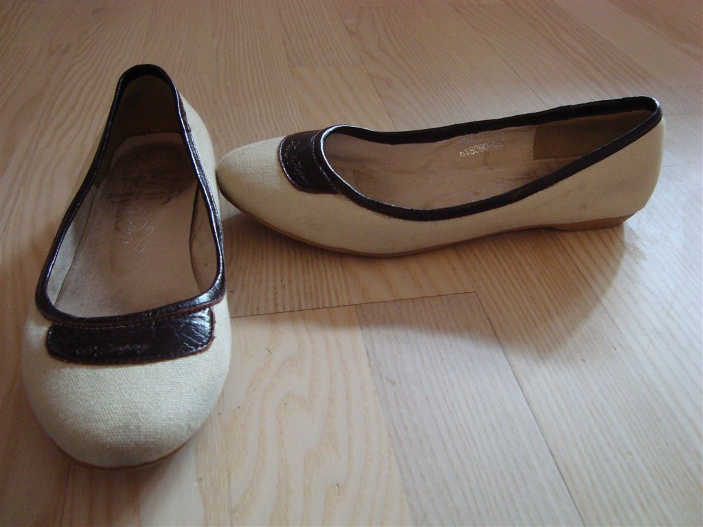 Flade ballerinaer lys m/sort kant str. 38