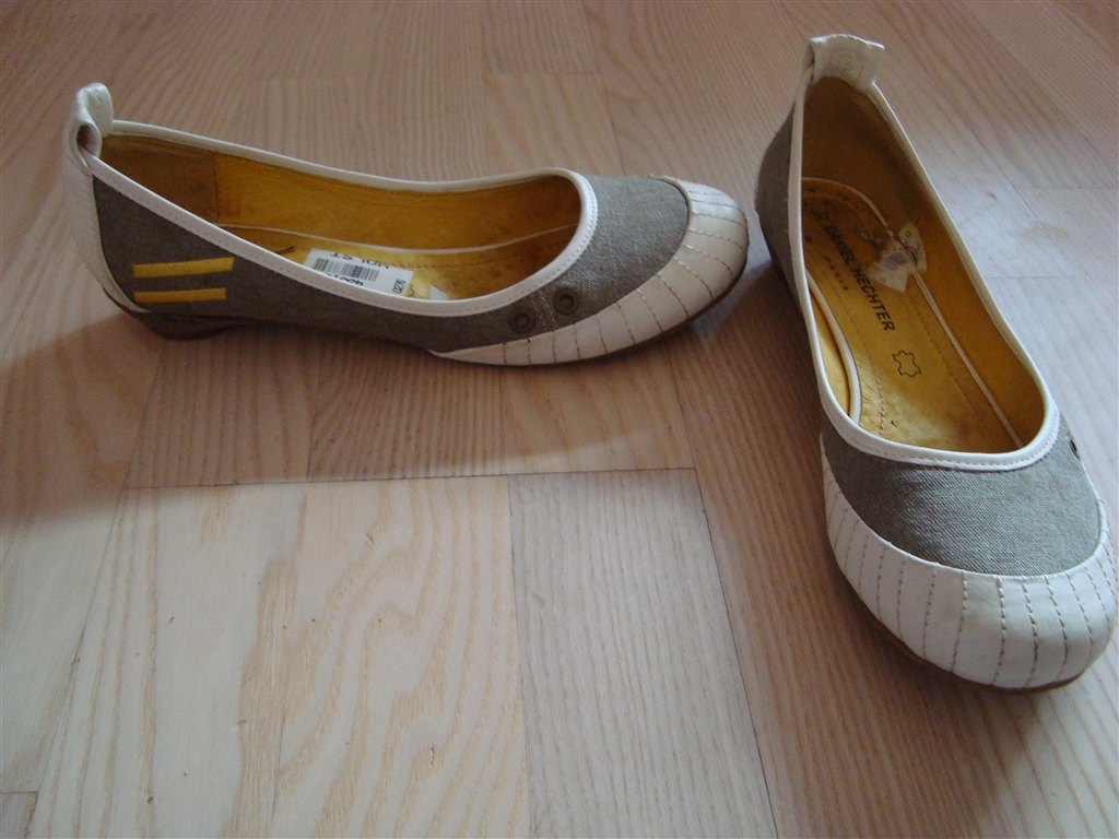 Flade ballerinaer hvid m/grå str. 37