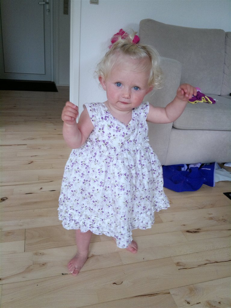 Emilie går nu rundt, der er fuld drøn på hende hele tiden, hun siger forskellige ord nu også bla. MOR