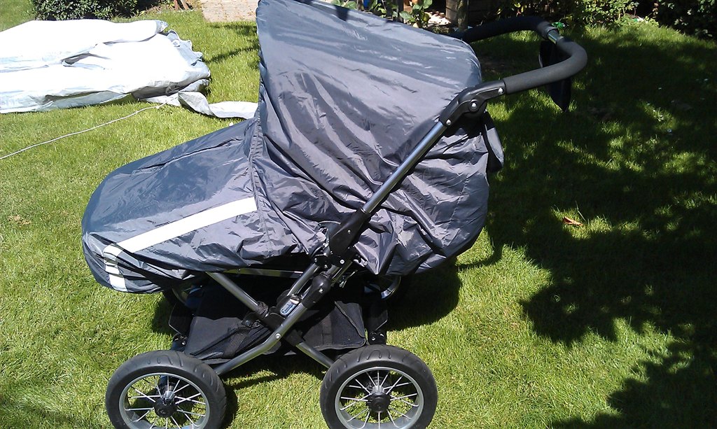 til vognen medfølger originalt regnslag og overlæder/fodpose.