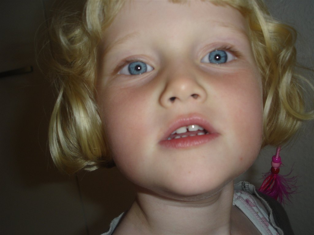 Amalie har en del krøller så vi valgte for nogle mdr siden at klippe det kortere end normalt da det kan være lidt smertefuld at få redt hår ..