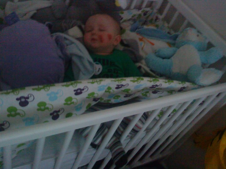 det var en periode hvor han bare ikke ville falde i søvn (pga. væske i ørerne).. men vi valgte bare at lade ham sidde - indtil han lagde sig..