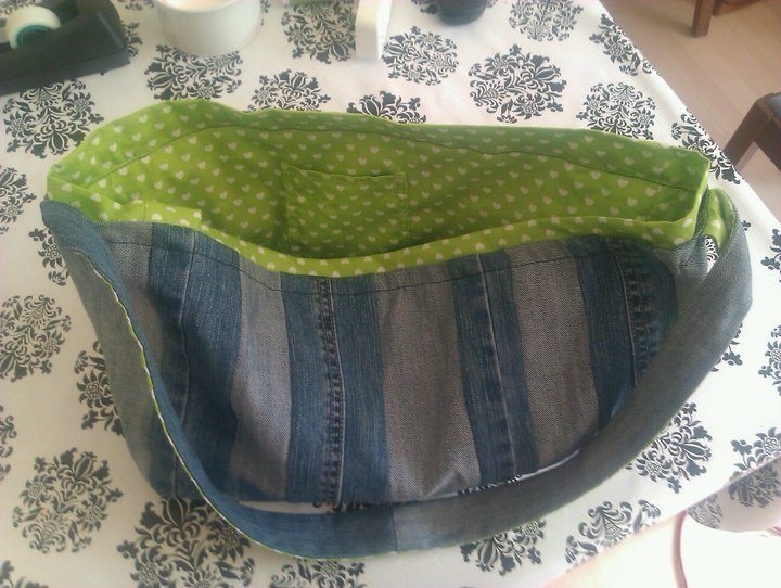 har længe gået med tanken om at skulle prøve kræfter med at lave en taske af 'gamle' bukseben. Så nu skulle det være. og her er resultatet. er mere eller mindre tilfreds