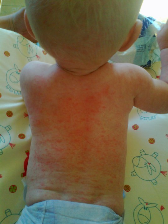 Det er en reaktion barnet kan få når der både er en virus og en infektion tilstede i kroppen OG det får/har fået antibiotika......ihhhh kan ikke huske om det kun er ved et specifikt antibiotika eller huske navnet, skal lige google!