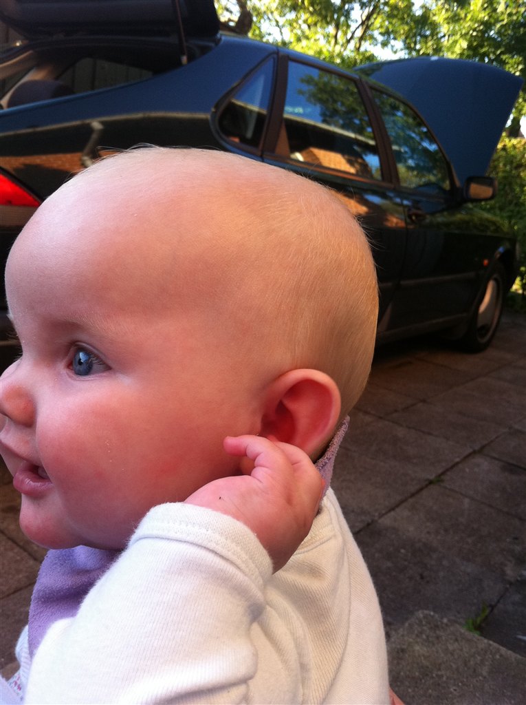 Hun har ikke problemer med at sove, og hun er ikke blevet mere pyller, så jeg tror ikke, at hun har ondt, men vi tror alligevel, at vi vil have tjekket hendes øre, engang i næste uge..