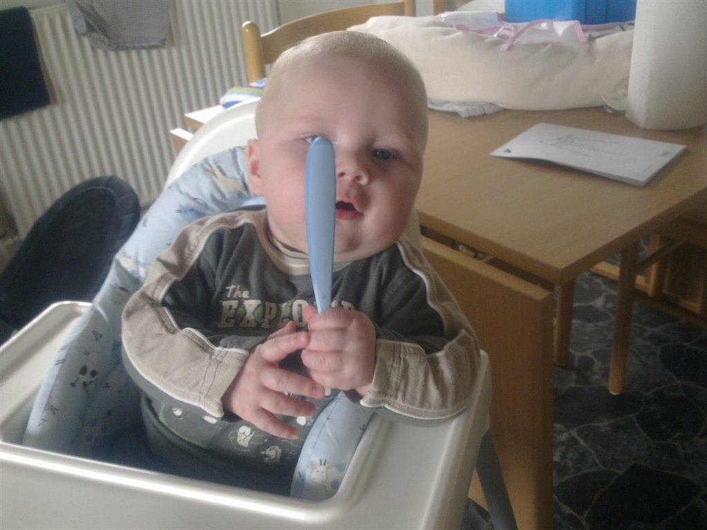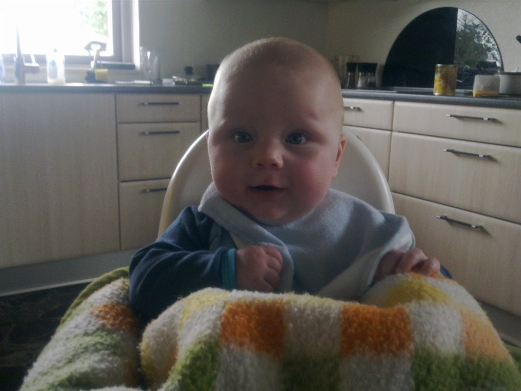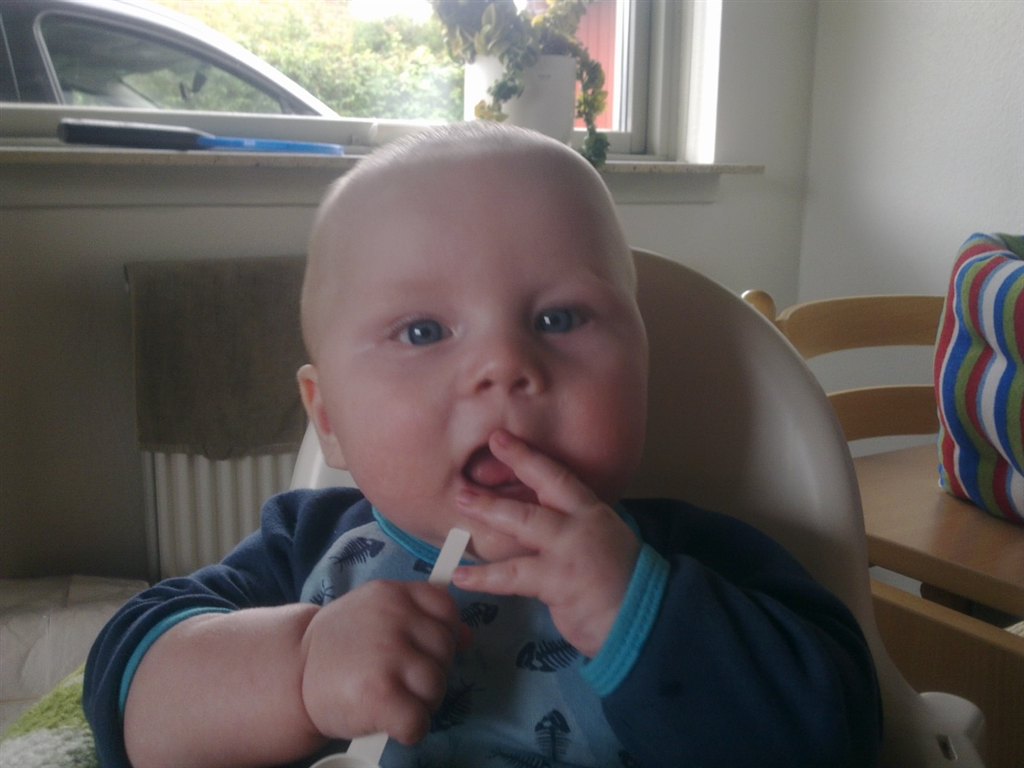 Ja så rundede Silas de 5 mdr idag. Han har fået grød hver dag i cirka 1 måned nu til stor fornøjelse for herren. Virkelig en nydelse for ham kan man se