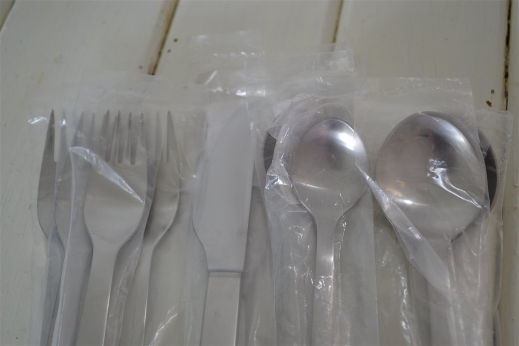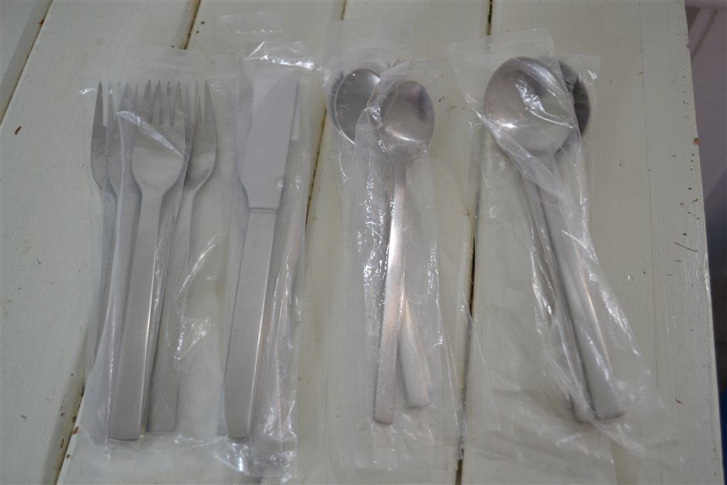 numsefisk skriver: New York bestik fra Georg Jensen. Helt nyt. Jeg har 4 stk latte skeer. 3 stk spise skeer. 2 stk knive. 4 stk gafler. Det er mat.
