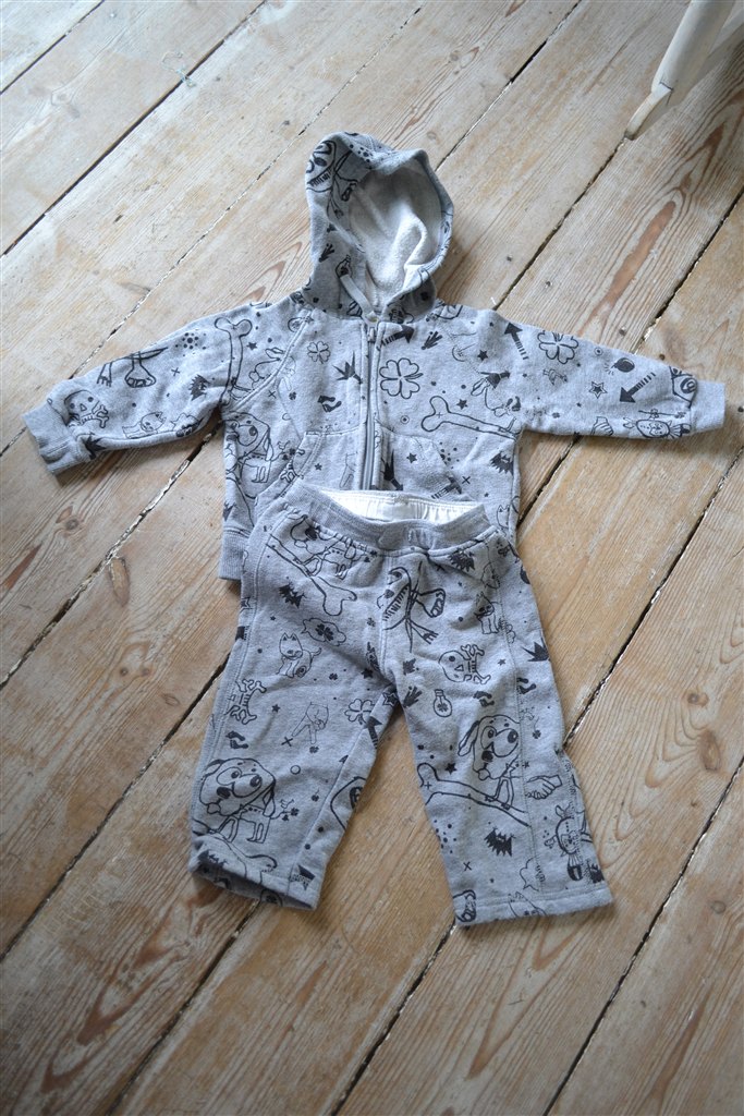 Jogging sæt str 68 (OBS snorene i bukserne er taget ud)