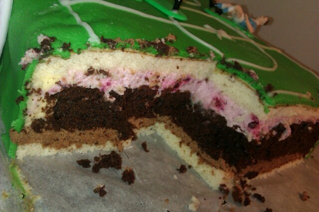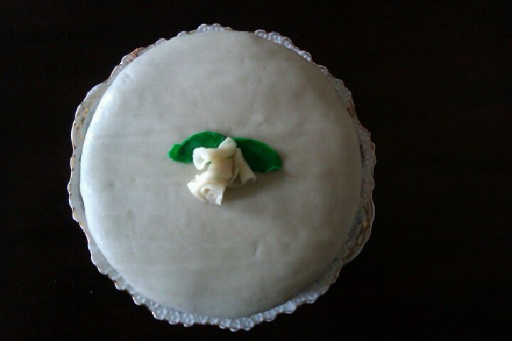Den anden runde kage var en lyn kage med købe bunde og marcipan overtræk.