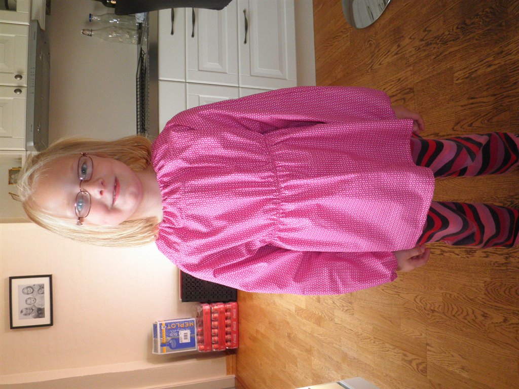 Jeg har lige færdiggjort en bluse til mine piger. Mønsteret er fra minikrea, og egentlig godt. Det hedder empirekjole - 30000
