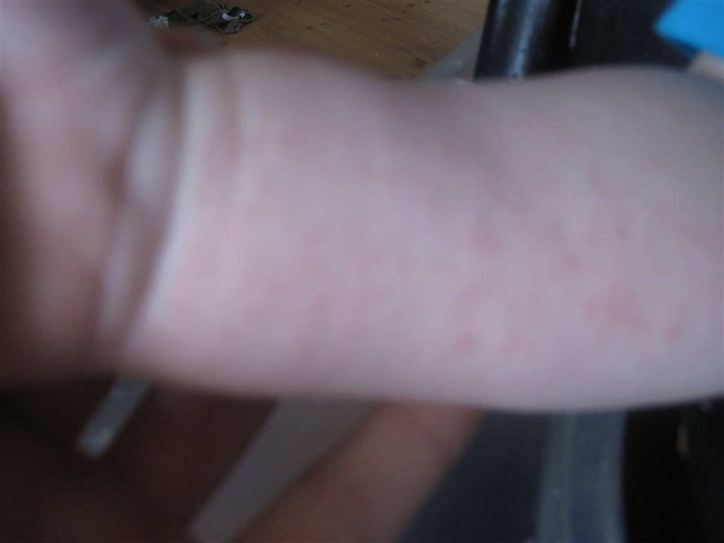 Begge mine sønner har på de sidste to dage fået ENORMT mange røde knopper. de er bitte små, men er meget på underarmene og på benene og lidt på ryggen. Tristan havde dem på kinderne igår, men i dag er det ikke så tydelige.
