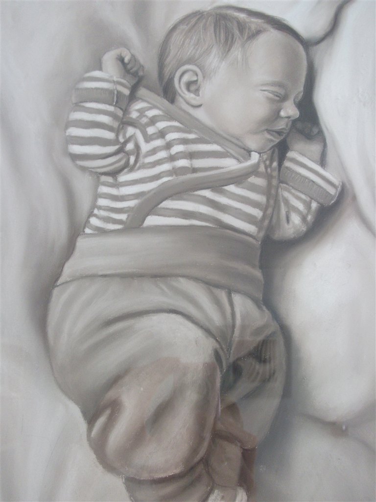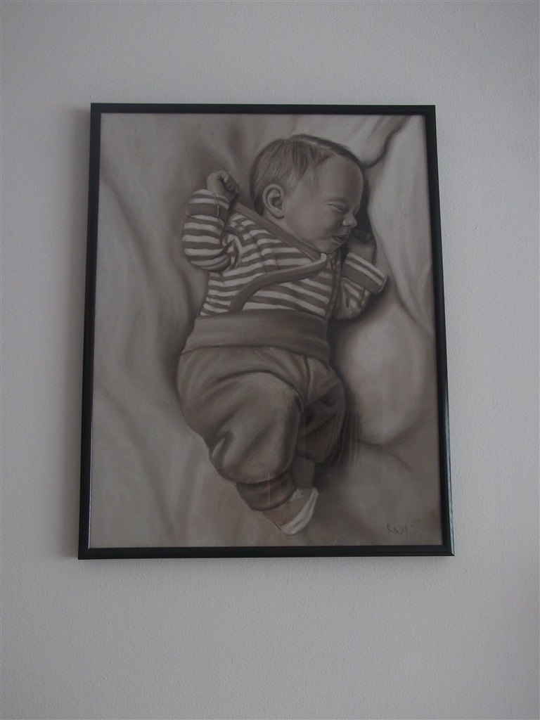 Laura er blevet tegnet - hun er 7 dage på billedet..