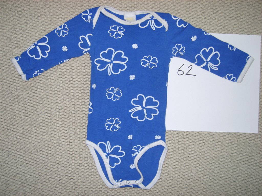 Holly's body. Blå med store hvide kløver. Str 62. GMB