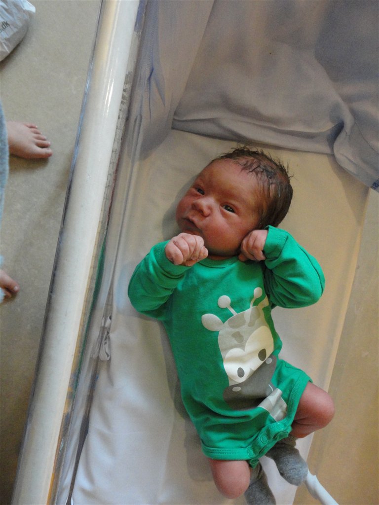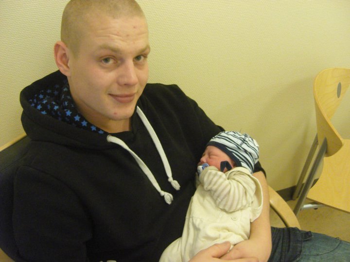 Her er Lukas da han lige var kommet ud. 2 timer senere og et fra idag