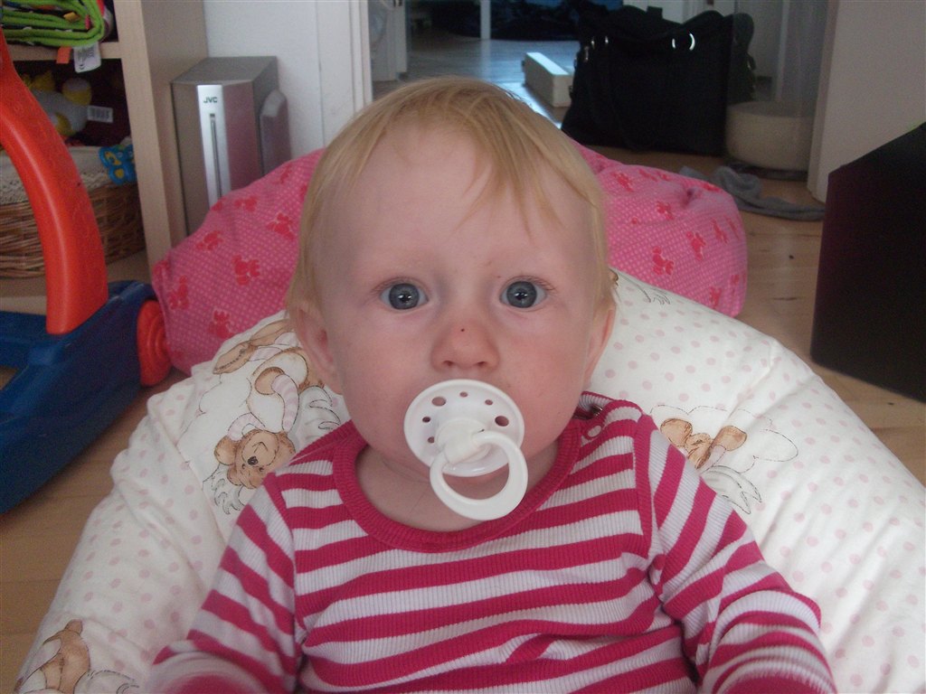 Nessie skriver: Hvor er hun sød Og hun sidder da også så fint i den sækkestol, kan godt forstå hun er glad for den
