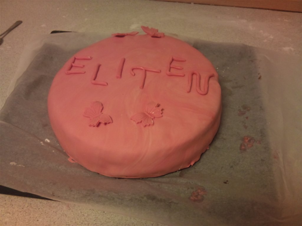 Skal ha' kage med til klassen imorgen og havde lige en rest lyserød farve tilbage som skulle bruges og da vi er et tøsehold var det jo bare perfekt