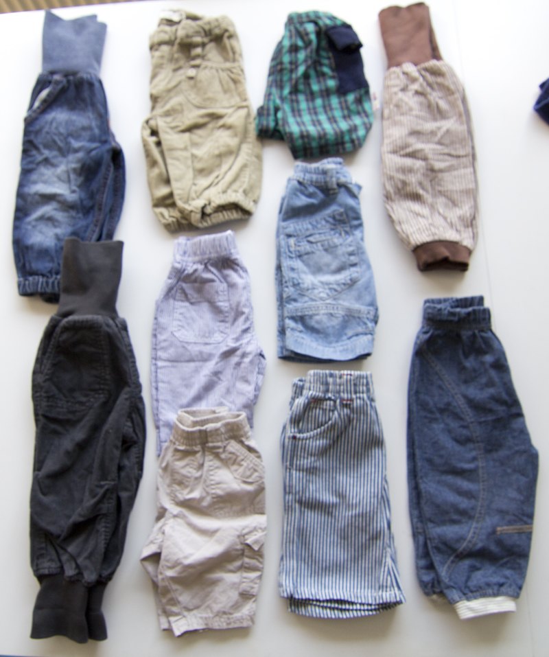 Bryndis skriver: Hvad er størrelsen på sættet på billede 3, barbapapa nattøjet og cowboybukserne som ligger nederst og yderst til højre på billede 7?