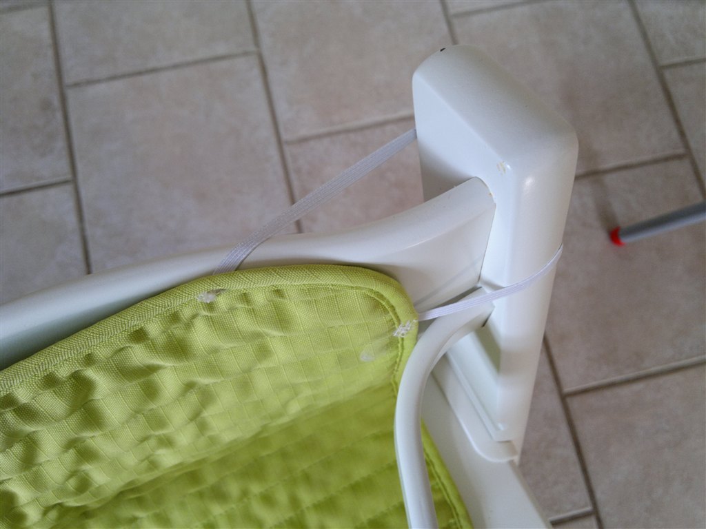 Jeg har en anden, son er lidt større, så der var plads til at sy et hak op, hvor stroppen er, så den fylder hele stolen! Dem her fra IKEA er lige et par cm. mindre, men fungerer helt perfekt!! Man kunne jo godt gøre lidt ekstra ud af det, og finde en snor eller elastik der har samme farve fx.! Jeg tog bare lige hvad jeg havde liggende...