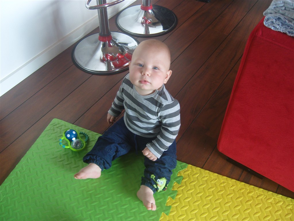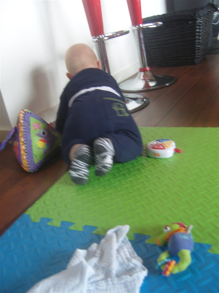 Vi snakkede lidt frem og tilbage, og SP så, at Victor kunne kravle og rejse sig op ad alt. hun var MEGET imponeret og sagde at det var tidligt.