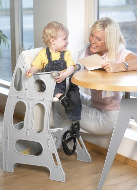 Lige nu bruger vi kun Ikea stolen, da William er ved at lære at spise selv, og så er det bare smart med det bord man kan klikke på! Og så er den lige til at smide en tur under bruseren bagefter!