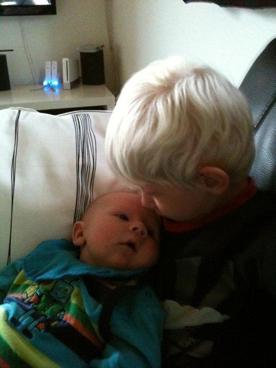 Jeg tog lige det her billede idag, af mine to drenge. Storbror spurgte selv om han ikke måtte sidde med Lillebror