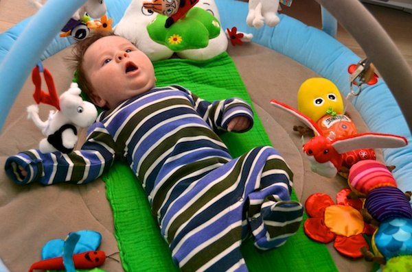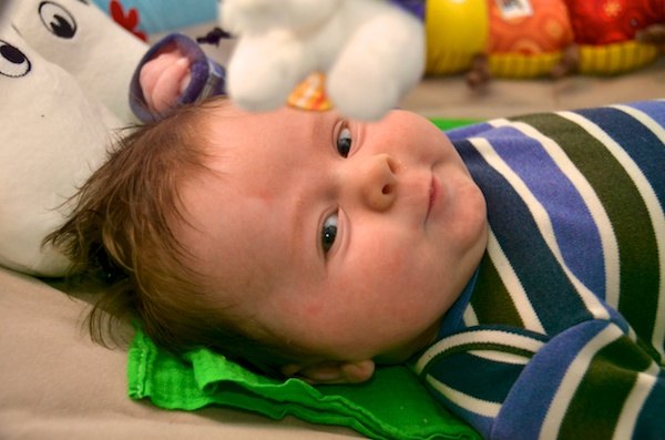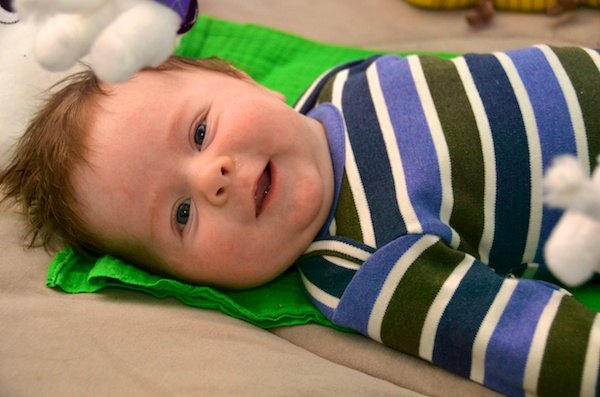 Han blir ammet en masse, og har travlt med at vokse. Han er nu 60 cm lang (52 ved fødslen) og vejer 6,1 kg (3,5 ved fødslen). Der har været lidt mavebøvl, men det begynder at stilne af nu, heldigvis