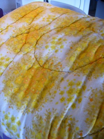 Fint gammel retro/vintage vat-tæppe, i retroblomstrede stof.