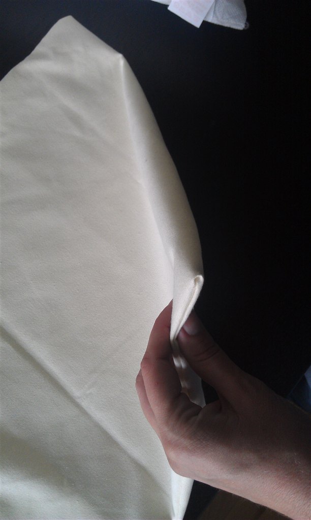 1. du kan se syningen og der hvor den er bukket.. Lommen sidder i modsatte ende..