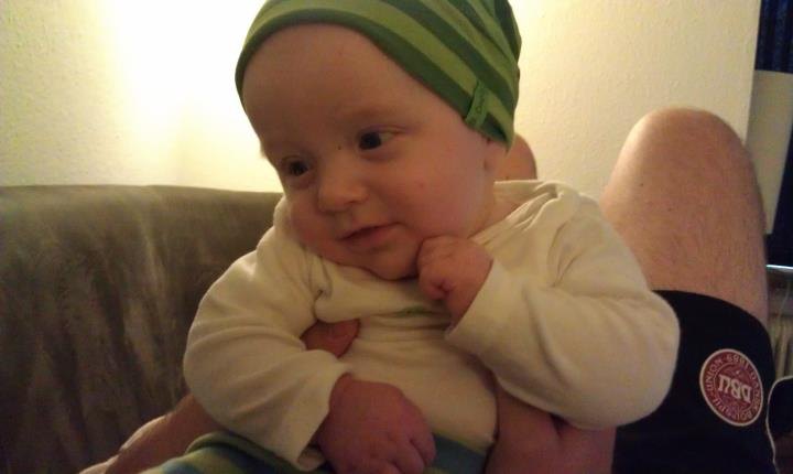 Vi havde en forfærdelig start, men nu er vi alle blomstret op igen. Benjamin er 4,5 måned og er allerede inde i nogenlunde fast rytme. Han er glad og smiler og griner hele tiden.