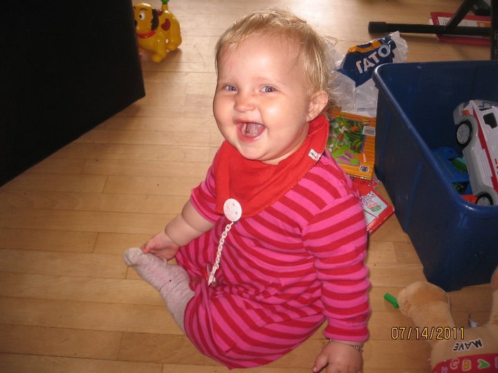 hun kravlede først da hun var 12 mdr så troede sku ikke at hun allerede ville gå som 15 mdr, men nu vralter hun altså derud af