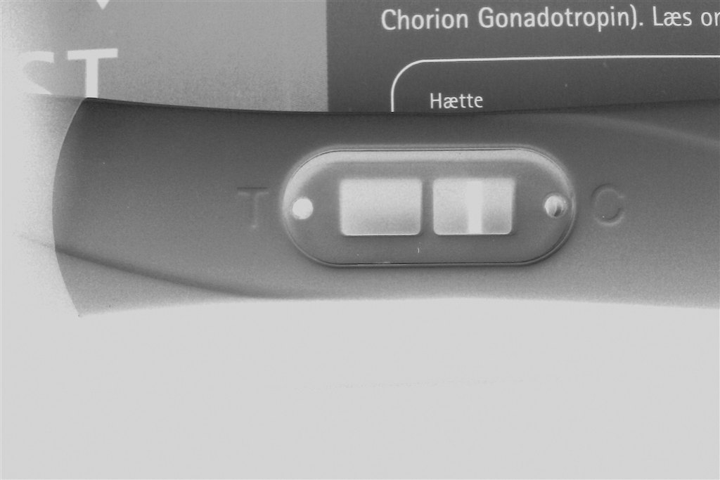 Billederne er ikke så tydlige, men man kunne godt ane stregen da jeg tog billedet, som er taget 4-5 min efter testen er taget.