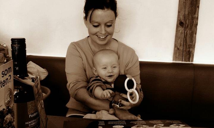 Vi plejer at få det til at passe med Benjamins sengetid. Han sover klokken 19 hver aften. Men imens jeg bestilte og fik min mad sad han ved mig. Og han grinte, og snakkede MEGET højt