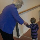 Billedet hvor hun har en dame i hånden, er hendes oldemor, der er meget dement, men den eneste hun aldrig glemmer hvem er og hvad hun hedder er Lærke