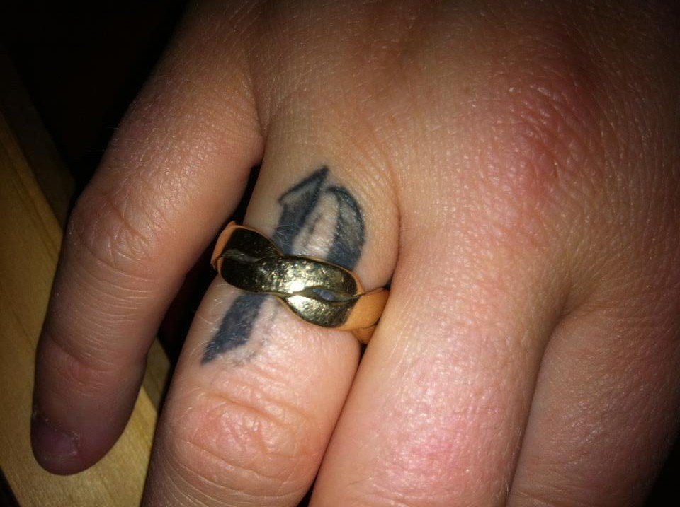 Det var en, min svigerfar havde liggende, en kæmpe guldring, som blev smeltet om.