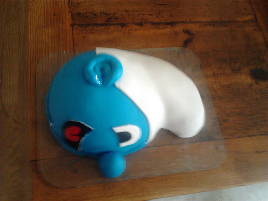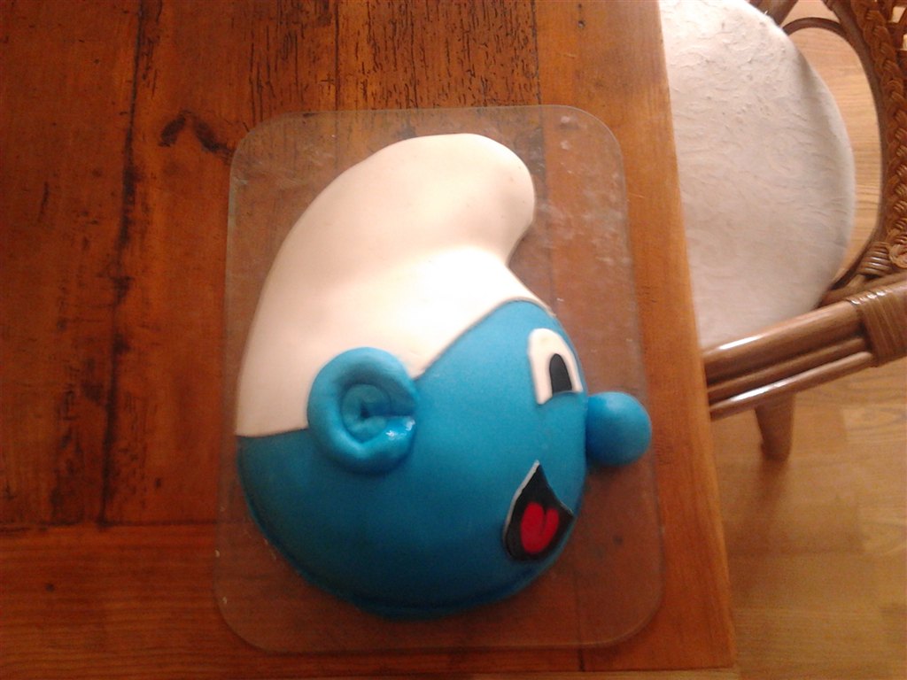 jeg havde lyst til at udfordre mine evner på noget andet end de tradtionelle runde kager, så jeg tænkte, hvorfor ikke en smølf, det er jo oppe i tiden...