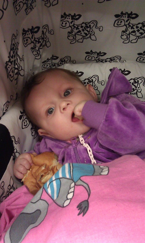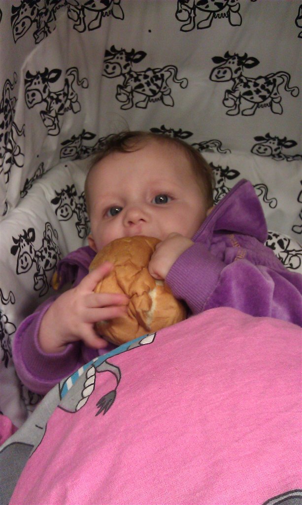 Hun ELSKER alm mad og vi ELSKER og kan give hende det.. Der er bbare lidt mere familiehygge over og have hende siddene ved spisebordet og spise med, selfølgelig med mors hjælp, men det vare nok heller ikke længe så vil hun selv, idag da vi lå og hyggede mens hun spiste, tog hun satme flasken selv og spiste, hun behøvede da ikke mig?!