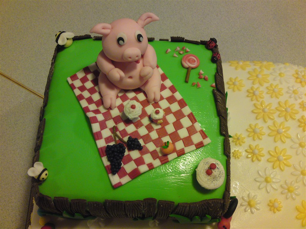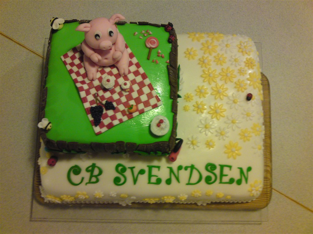 Denne kage var en bestilling til sommerfesten aka "grisefest", deraf grise-temaet, på min kærestes arbejde, hvor partnere altid er inviteret