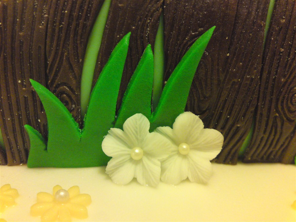 Fondanten smeltede desværre lidt under transporten, så da billederne blev taget, var den desværre ikke helt så flot som, da jeg lige have lavet den. Og det gode kamera var glemt hjemme, så igen lidt skidt fremtræden