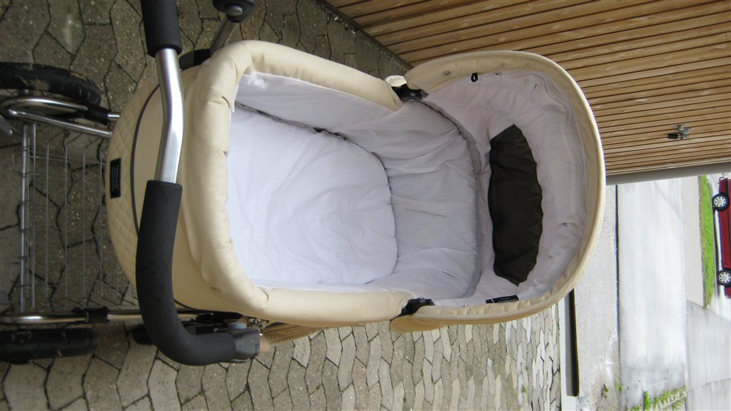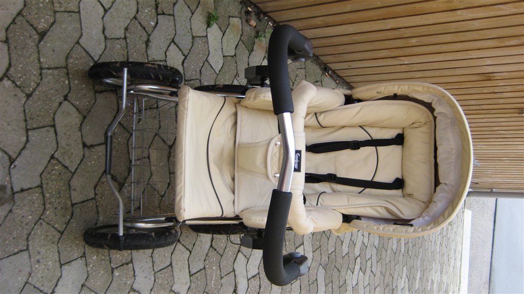 Jeg har Emmaljunga mondial duo combi vogn i cream leatherette til salg. Den er med cryptonite stel, det tilhørende regnslag og indbygget fluenet.