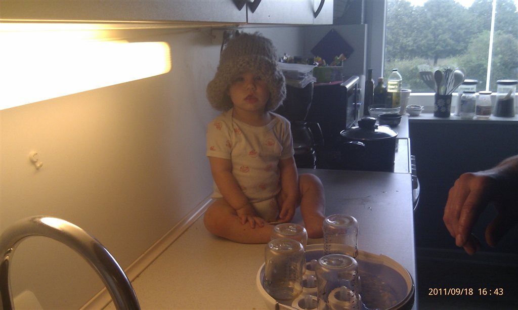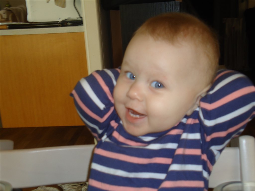 Siger sit første ord: Ja - "heeeej", og ryster på hovedet for "nej"