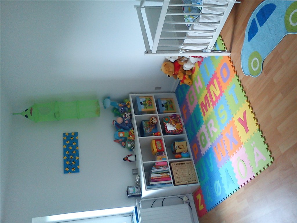 Børneværelset bliver nok mest et pusle/legetøjsopbevaringsrum i starten, men der kommer også en tremmeseng derind, til når han/hun bliver ca. 6 måneder. I soveværelset har vi en vugge, der går i arv i min kærestes familie.