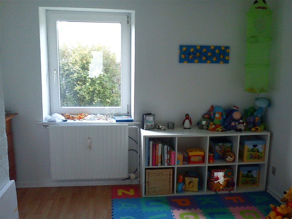 De ideer jeg leger med i hovedet lige nu, er at male 2 store firkanter på væggen - en grøn og en lilla (måske, vi har ikke besluttet os for farverne endnu). Vi vil nok også prøve at finde nogle sjove wallstickers i mange farver, fx med dyr. Og så noget med nogle forskellig farvede hylder og legetøjskasser. Hmmm synes det lyder lidt roddet lige nu med alle de ting/farver, men jeg er sikker på, at når vi kommer igang så ryger nogler ideer nok væk igen og andre kommer til - og så ender vi det (for os) perfekte børneværelse!