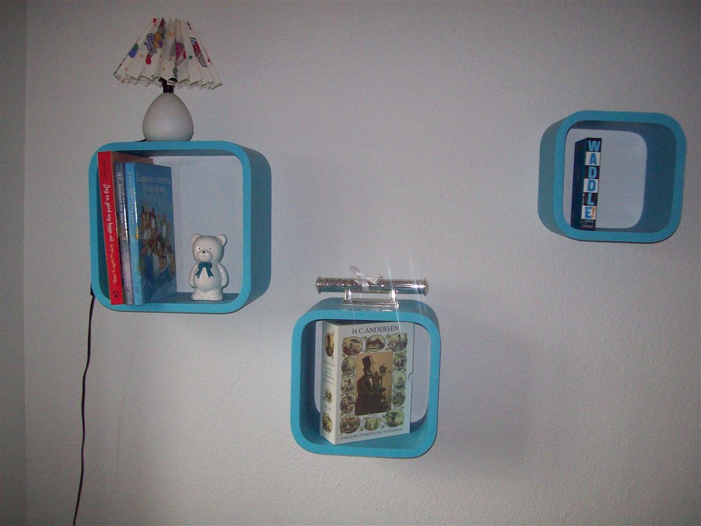 De ideer jeg leger med i hovedet lige nu, er at male 2 store firkanter på væggen - en grøn og en lilla (måske, vi har ikke besluttet os for farverne endnu). Vi vil nok også prøve at finde nogle sjove wallstickers i mange farver, fx med dyr. Og så noget med nogle forskellig farvede hylder og legetøjskasser. Hmmm synes det lyder lidt roddet lige nu med alle de ting/farver, men jeg er sikker på, at når vi kommer igang så ryger nogler ideer nok væk igen og andre kommer til - og så ender vi det (for os) perfekte børneværelse!