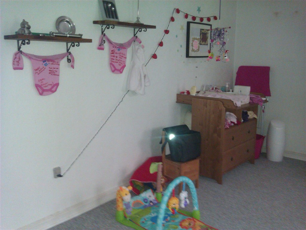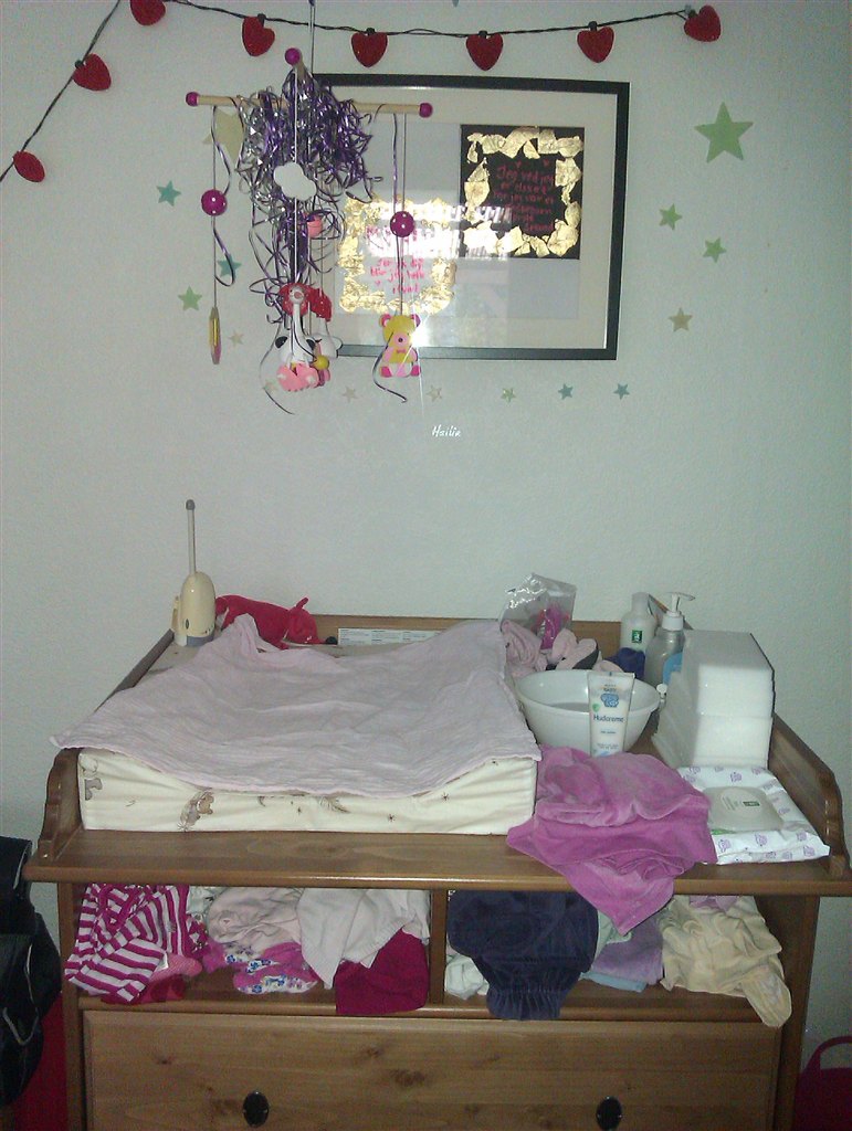 Vi er endnu ikke færdige hendes seng skal stå ved siden af puslebordet, den står inde hos os lige nu.. og der skal nogle ting i reolen og der skal nogle flere billeder på væggene...