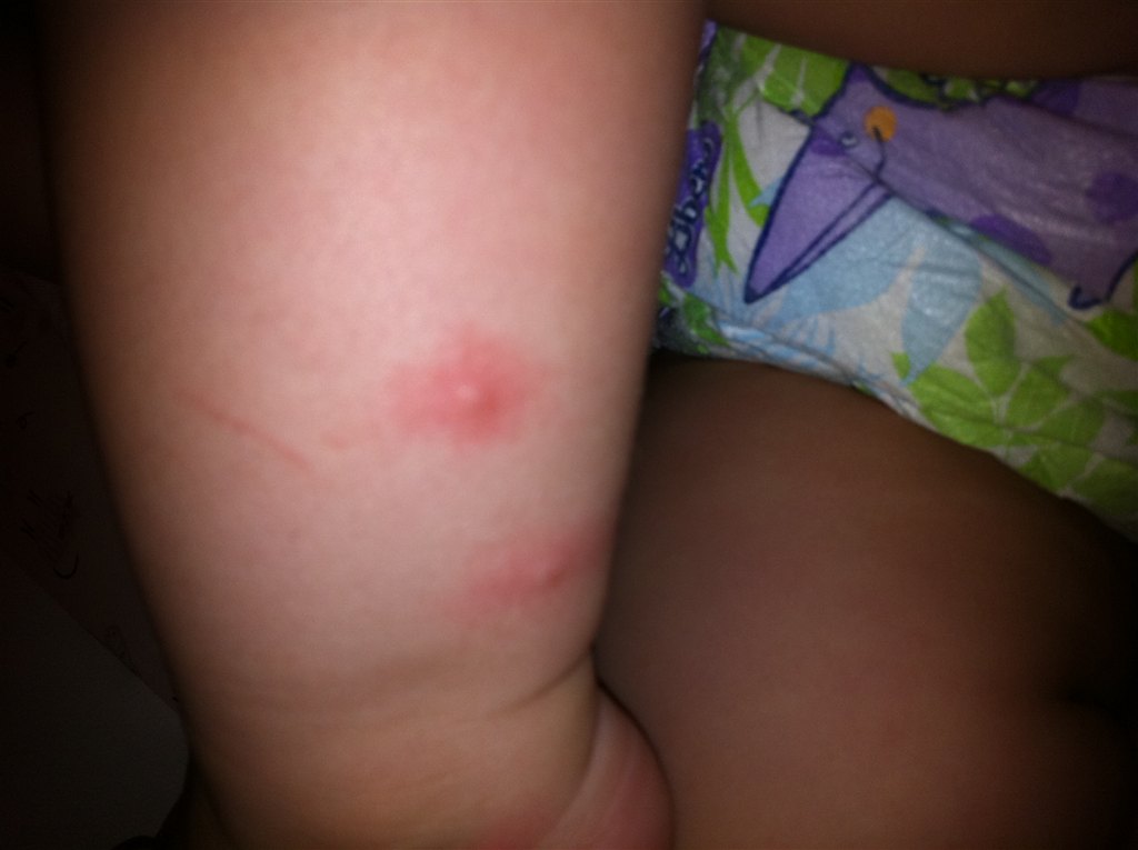 Der er en ny for for virus ude blandt børn, som giver influenza lign symptomer og som eftervirkning giver knopper ala dem du har taget billeder af der.. De klør ikk, minder om skoldkopper, men forsvinder helt efter max en uge.. Min datter har også haft dem, hun havde ca 5 både på det ene ben og den ene arm..