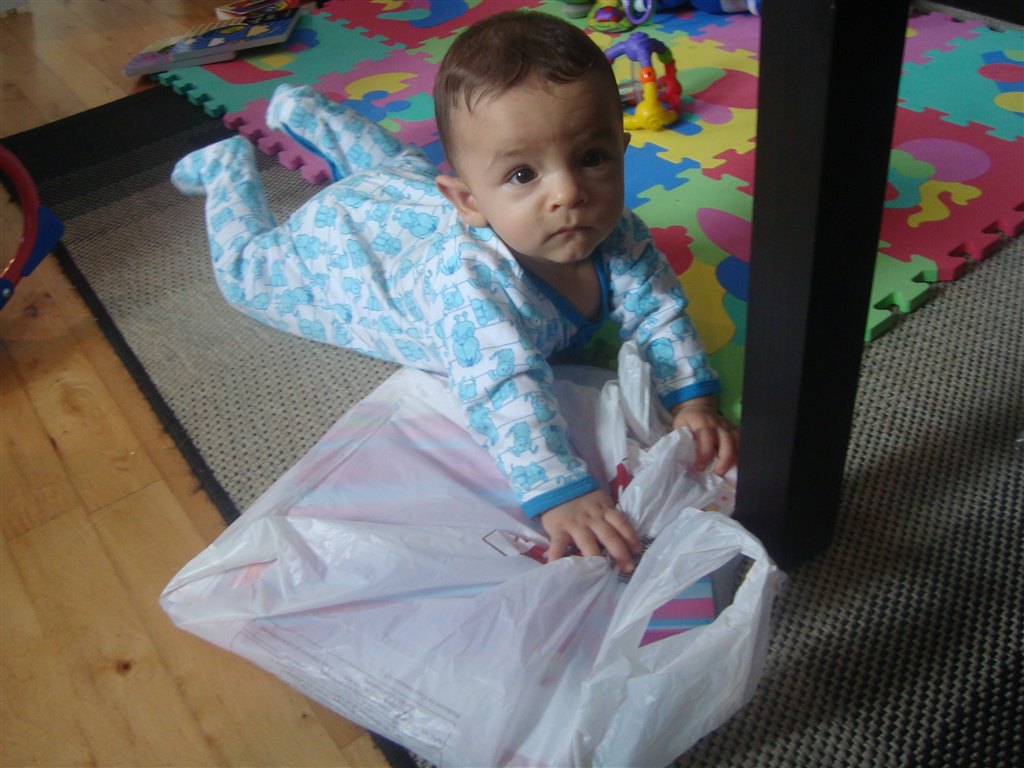 Som tiden dog bare flyver. Min skønne søn blev i sidste uge 6 måneder og kan bare mere og mere. Han triller nu lystigt fra ryg til mave og er blevet gladere for at ligge på maven