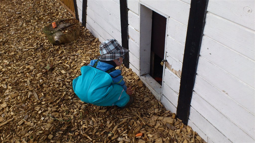 hvor er det bare MEGA sødt det billede hvor han sidder og kigger ind i hønsehuset! (haha hvis det altså ér et hønsehus???)